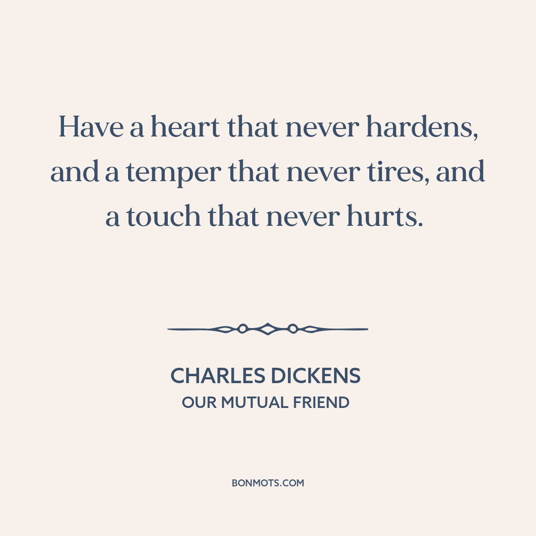 Have a heart that never hardens, and a temper that never tires, and a touch that never hurts.