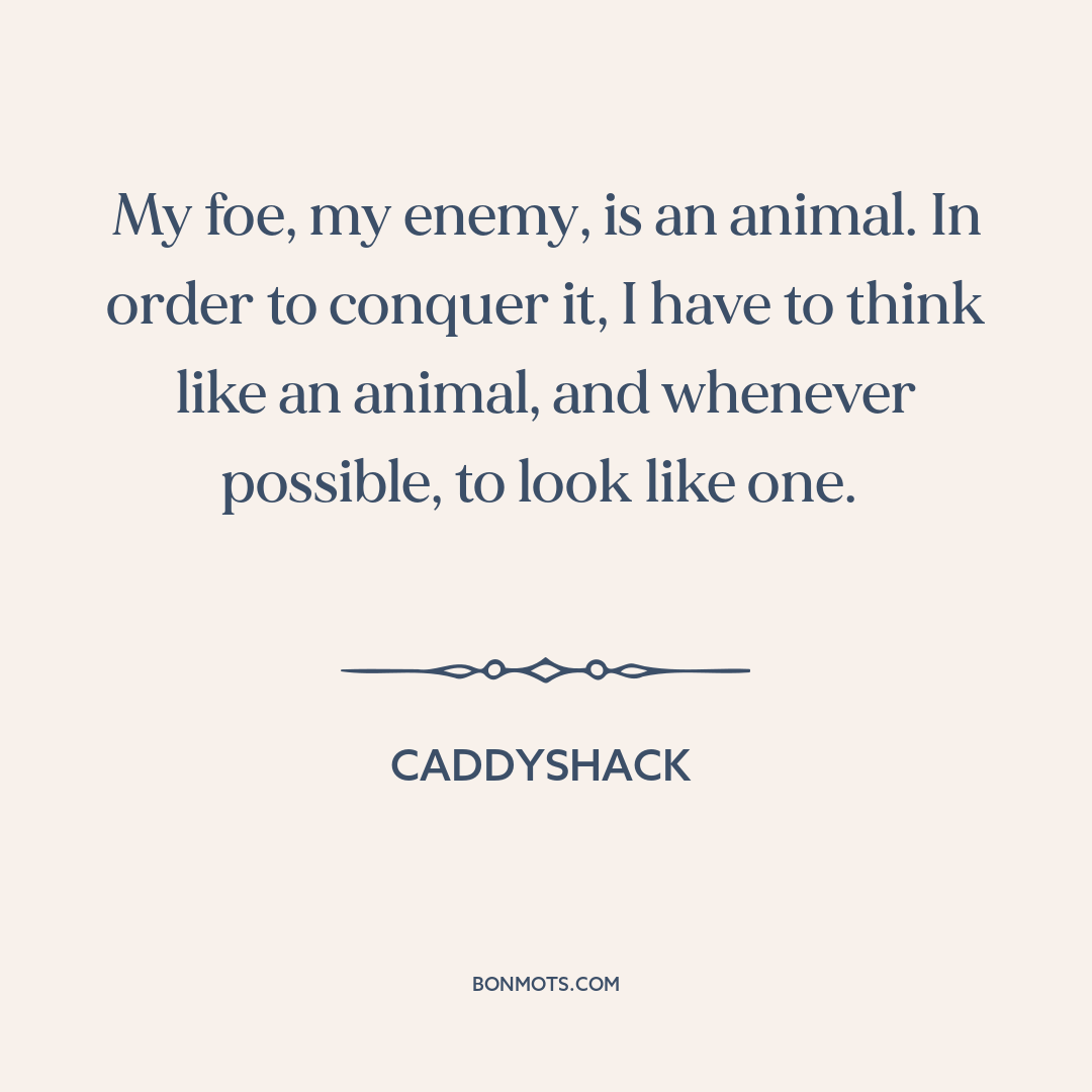 My foe, my enemy, is an animal. In order to conquer it, I have to think like an animal, and whenever possible, to look like one.