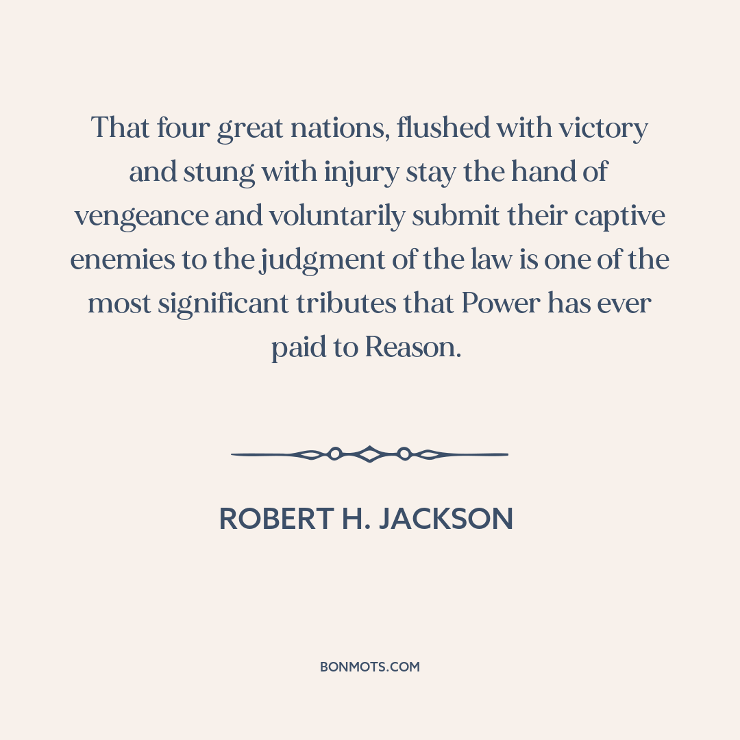 That four great nations, flushed with victory and stung with injury stay the hand of vengeance and voluntarily submit their captive enemies to the judgment of the law is one of the most significant tributes that Power has ever paid to Reason.