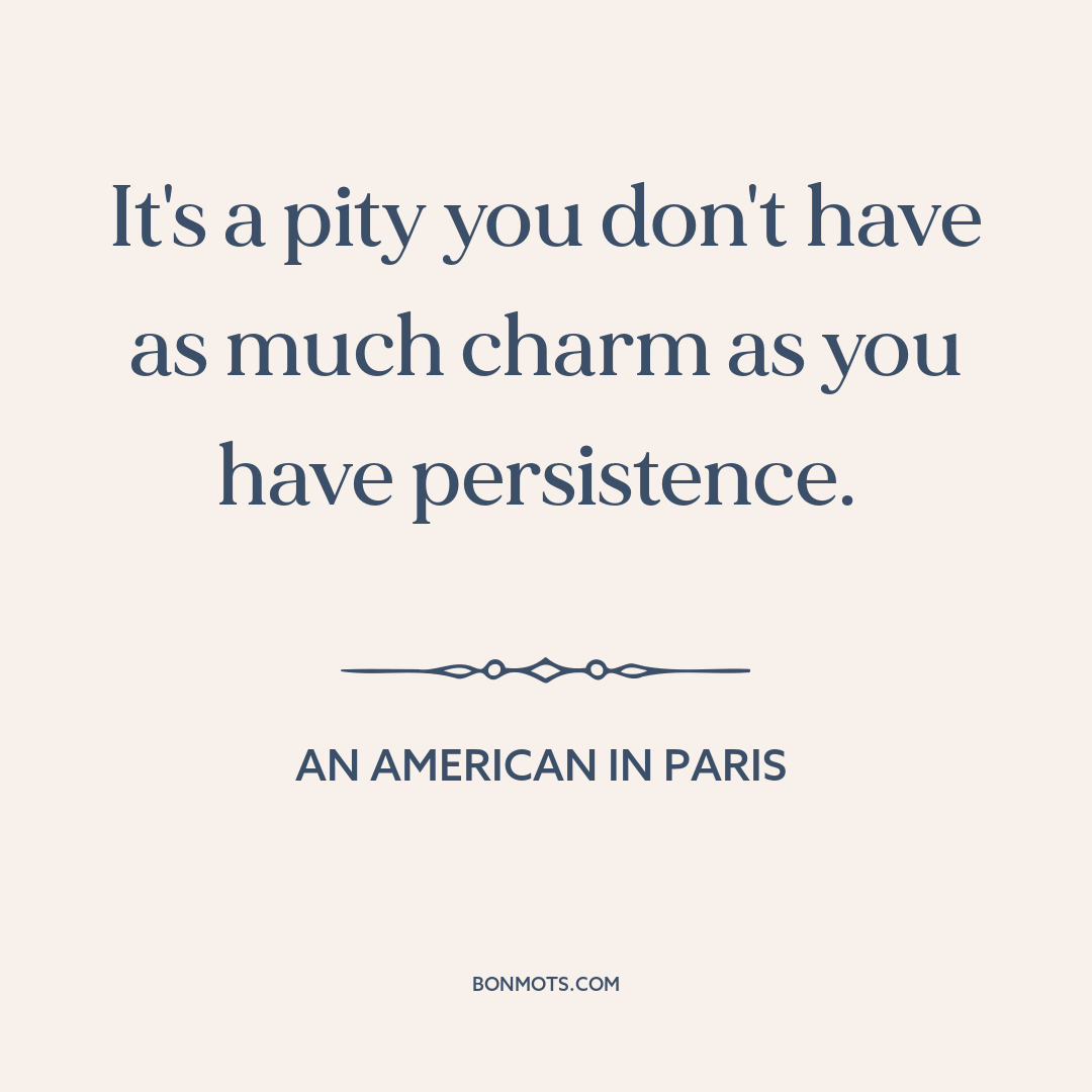 It's a pity you don't have as much charm as you have persistence.