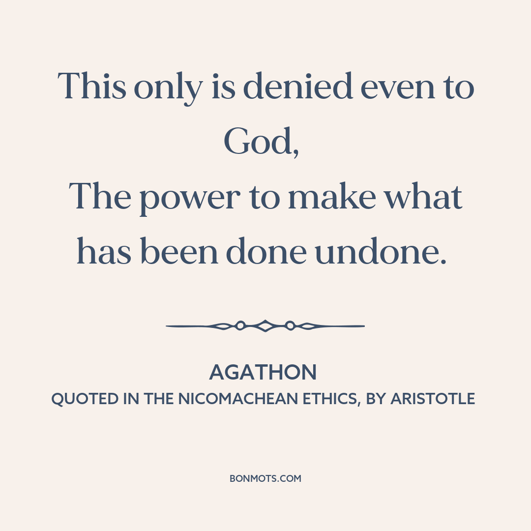 Agathon. Quoted in Ἠθικὰ Νικομάχεια, Ēthika Nikomacheia [Nicomachean Ethics], written by Aristotle. c. 350 BC, bk. 6.