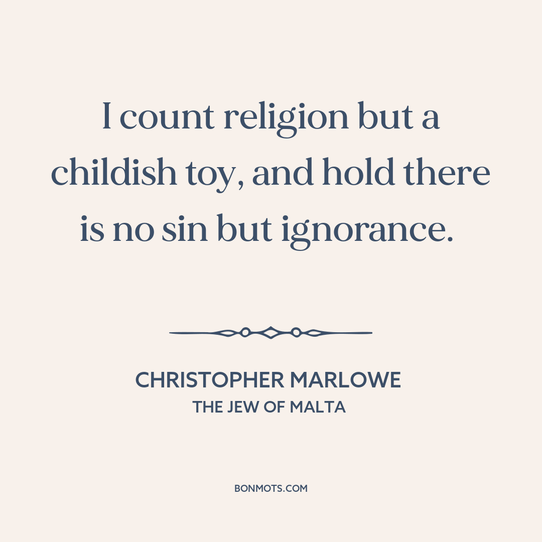 I count religion but a childish toy, and hold there is no sin but ignorance.