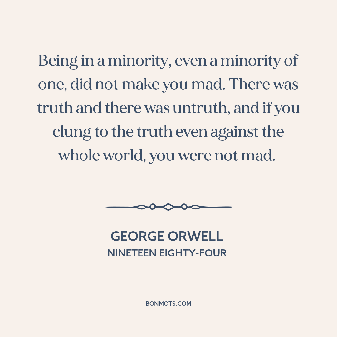 Being in a minority, even a minority of one, did not make you mad. There was truth and there was untruth, and if you clung to the truth even against the whole world, you were not mad.