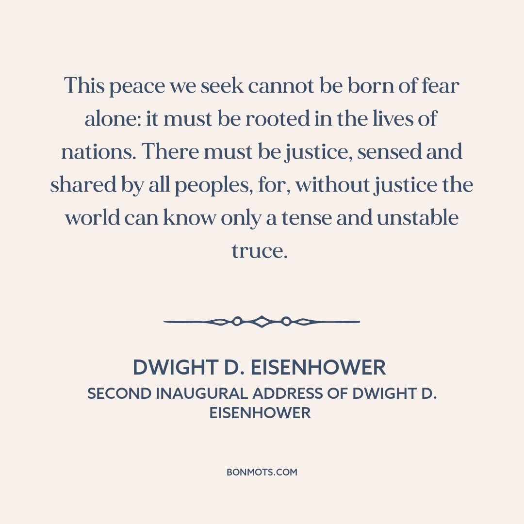 This peace we seek cannot be born of fear alone: it must be rooted in the lives of nations. There must be justice, sensed and shared by all peoples, for, without justice the world can know only a tense and unstable truce.