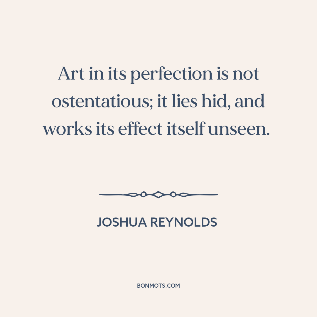 Art in its perfection is not ostentatious; it lies hid, and works its effect itself unseen.
