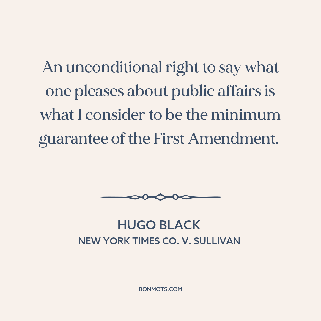 An unconditional right to say what one pleases about public affairs is what I consider to be the minimum guarantee of the First Amendment.
