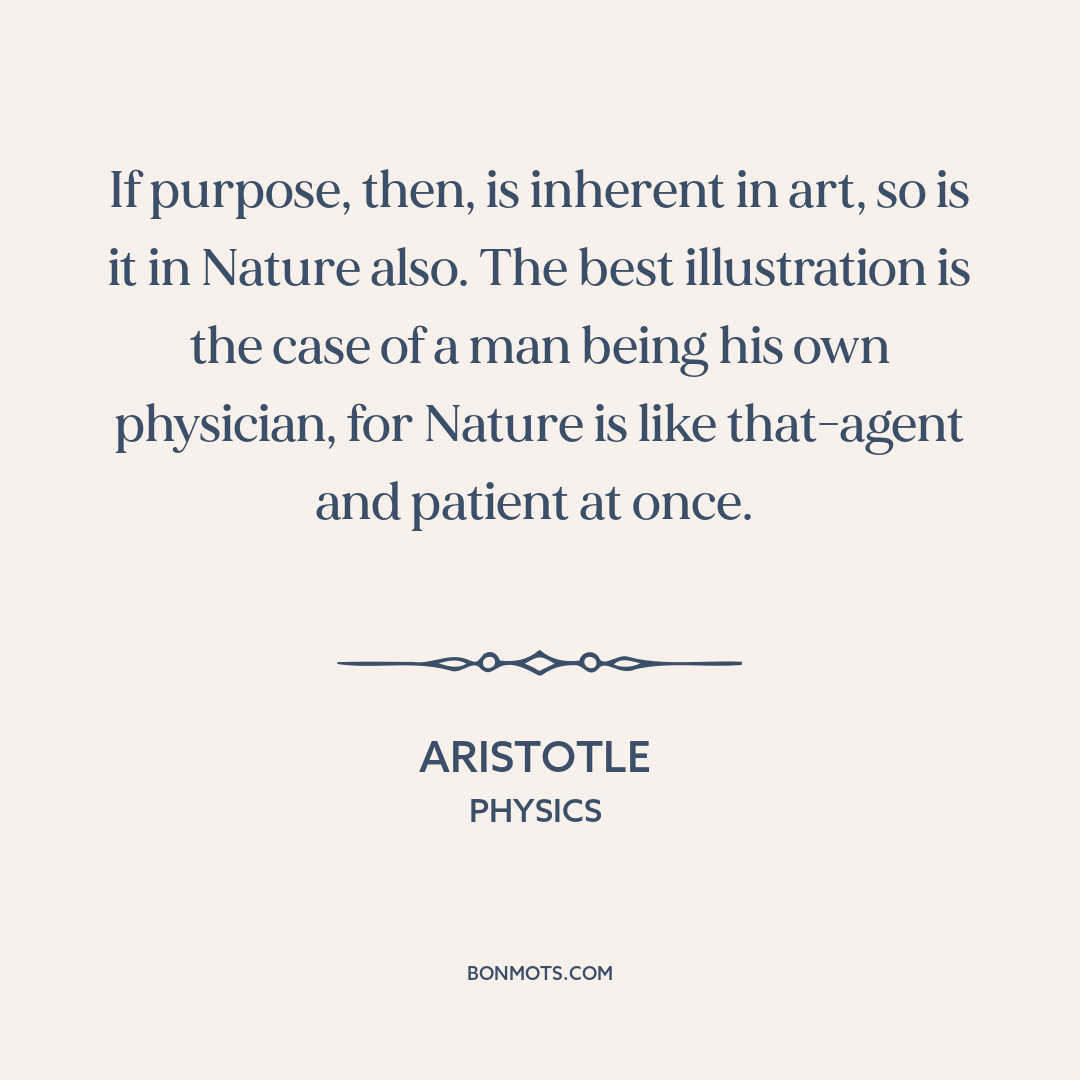 If purpose, then, is inherent in art, so is it in Nature also. The best illustration is the case of a man being his own physician, for Nature is like that-agent and patient at once.
