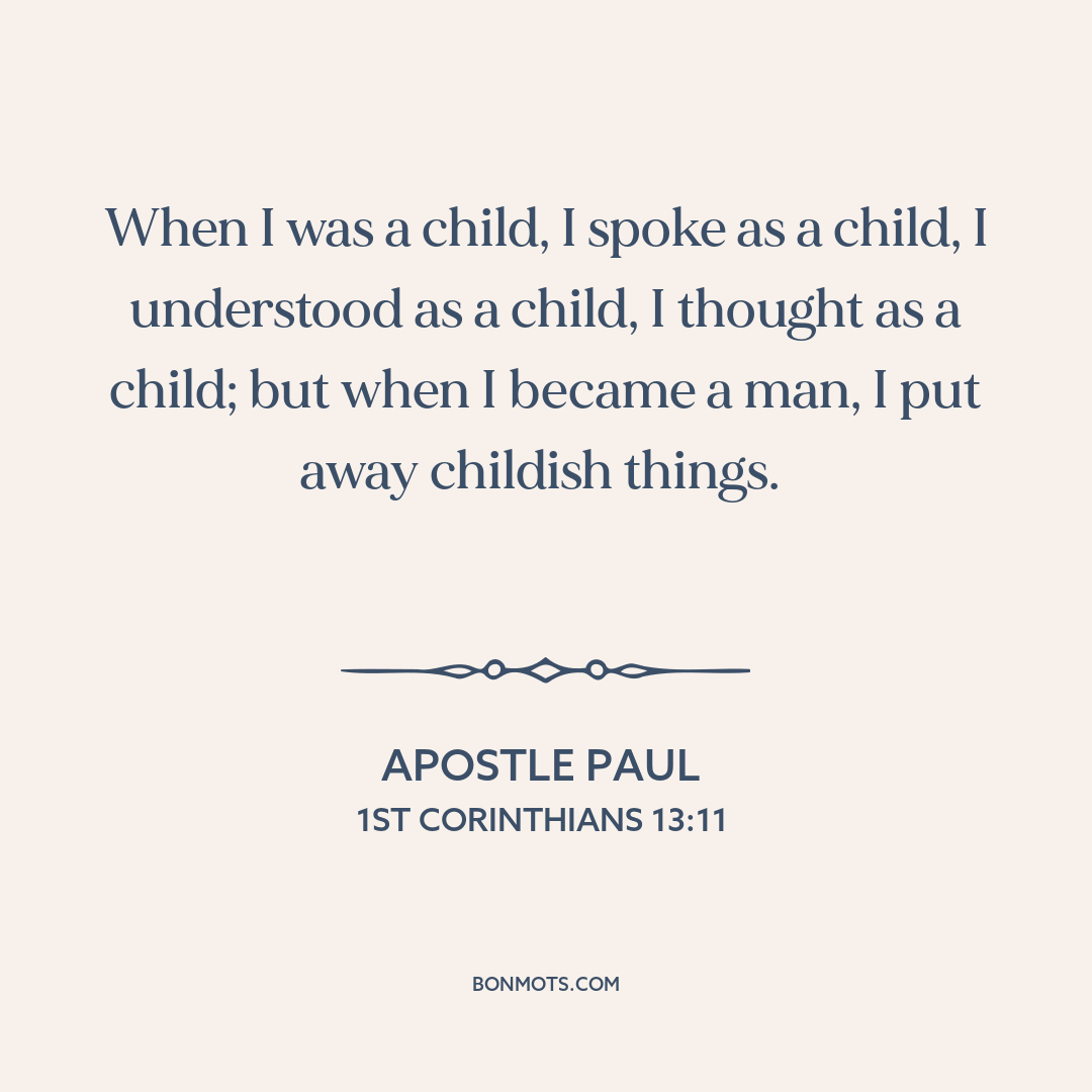 ὅτε ἤμην νήπιος, ἐλάλουν ὡς νήπιος, ἐφρόνουν ὡς νήπιος, ἐλογιζόμην ὡς νήπιος· ὅτε γέγονα ἀνήρ, κατήργηκα τὰ τοῦ νηπίου.