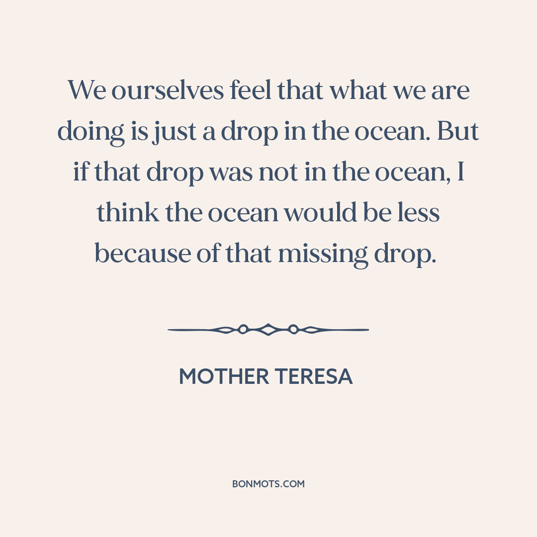 We ourselves feel that what we are doing is just a drop in the ocean. But if that drop was not in the ocean, I think the ocean would be less because of that missing drop.