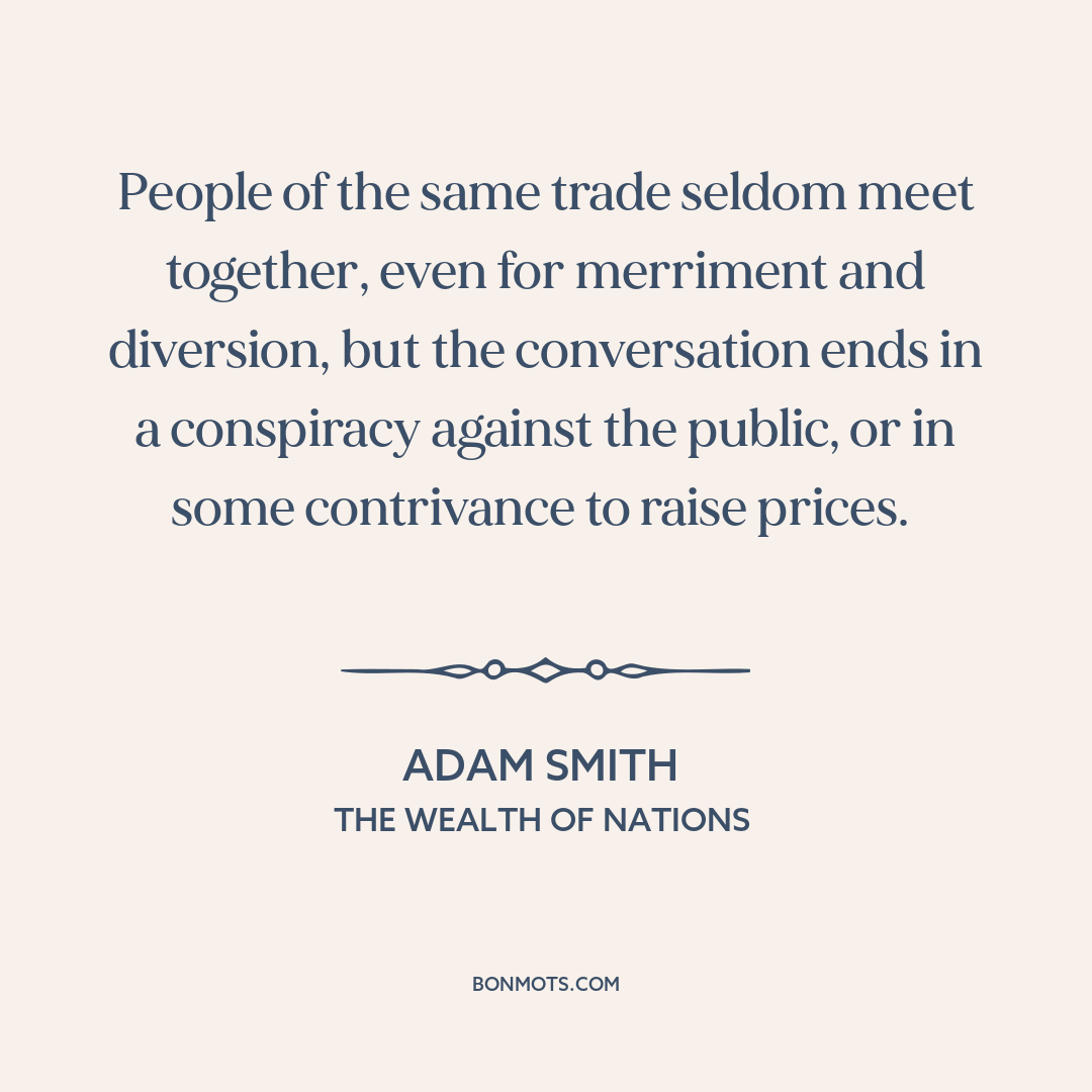 People of the same trade seldom meet together, even for merriment and diversion, but the conversation ends in a conspiracy against the public, or in some contrivance to raise prices.