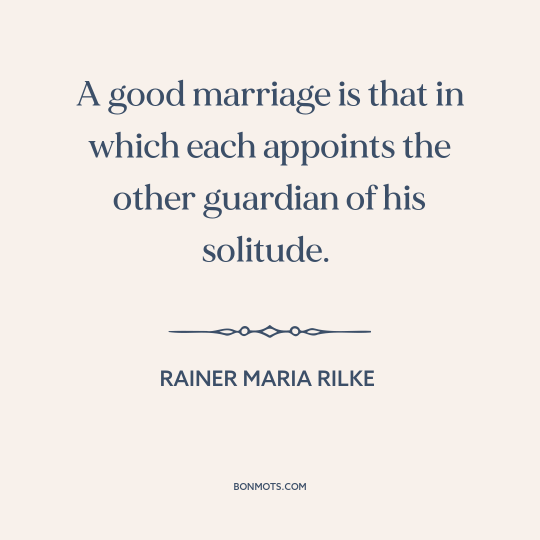 A good marriage is that in which each appoints the other guardian of his solitude.