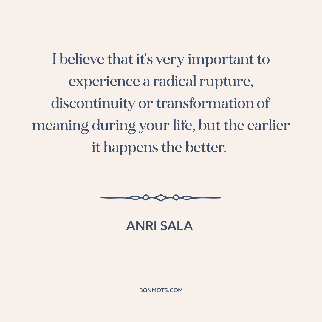 I believe that it's very important to experience a radical rupture, discontinuity or transformation of meaning during your life, but the earlier it happens the better.