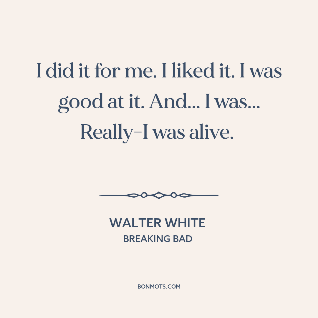 I did it for me. I liked it. I was good at it. And... I was... Really-I was alive.