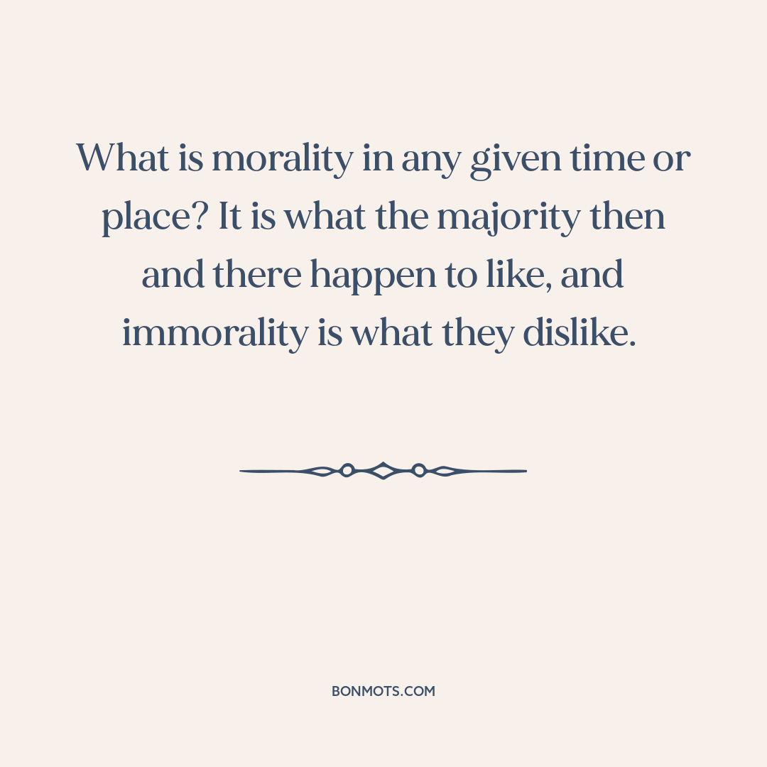 What is morality in any given time or place? It is what the majority then and there happen to like, and immorality is what they dislike.