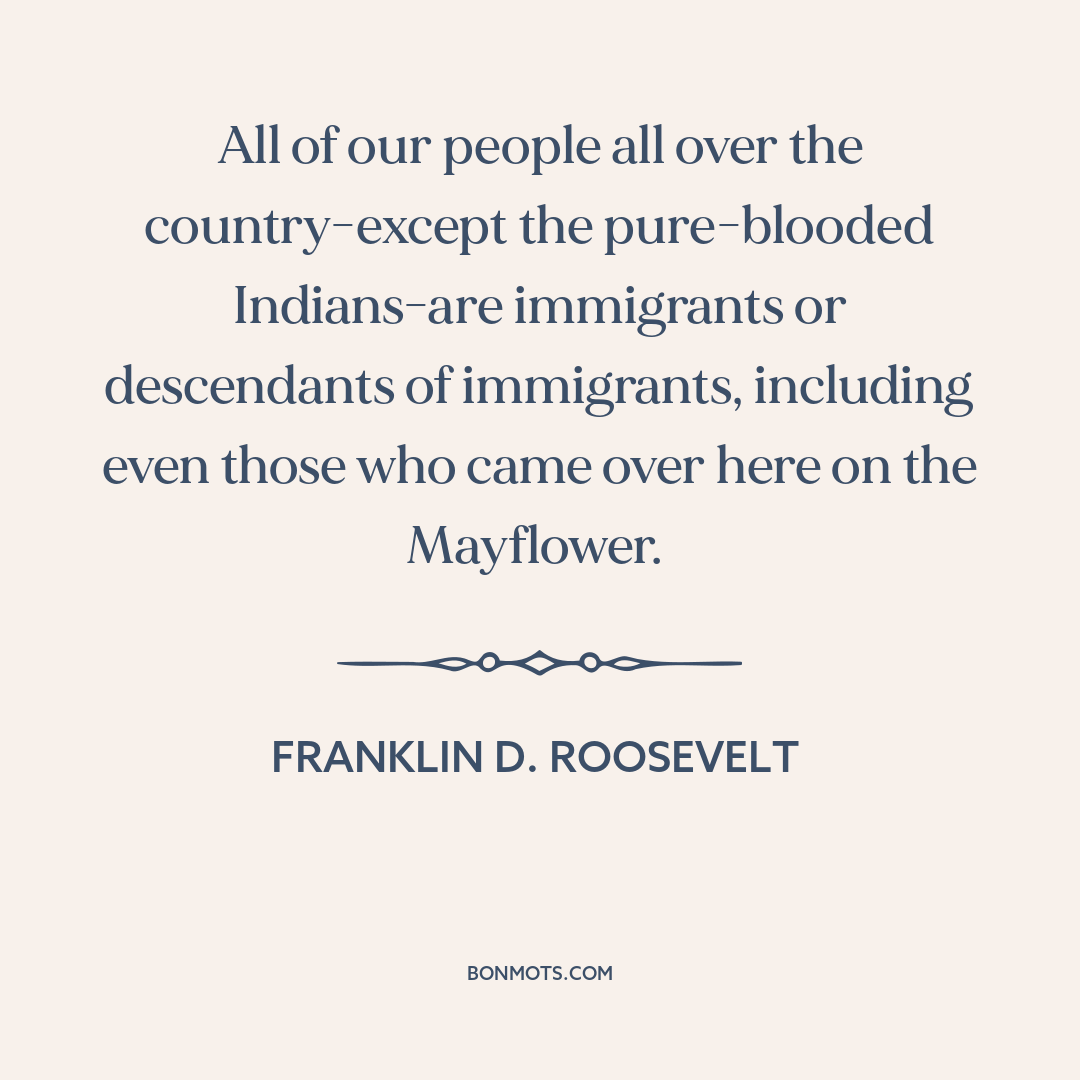 All of our people all over the country-except the pure-blooded Indians-are immigrants or descendants of immigrants, including even those who came over here on the Mayflower.