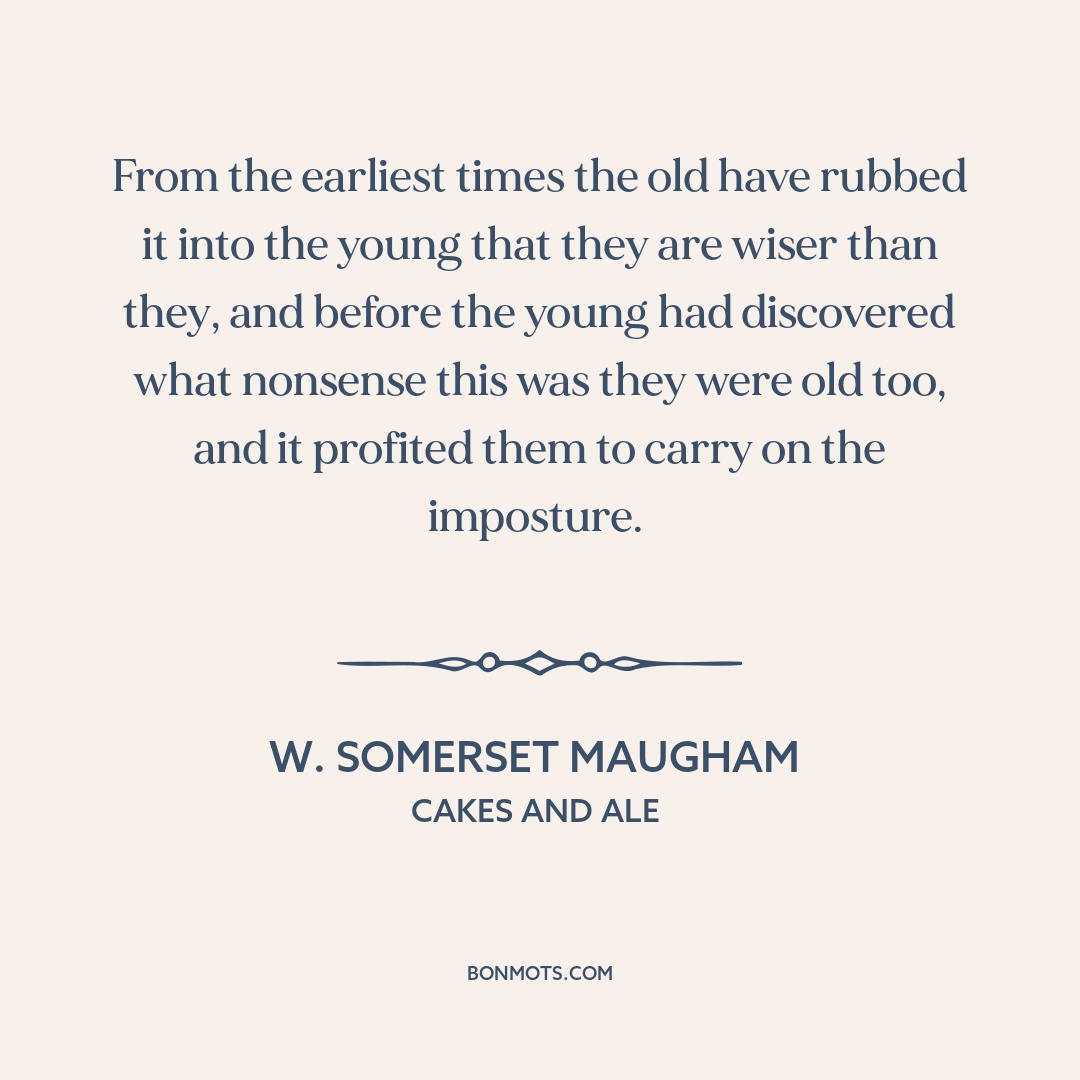 From the earliest times the old have rubbed it into the young that they are wiser than they, and before the young had discovered what nonsense this was they were old too, and it profited them to carry on the imposture.