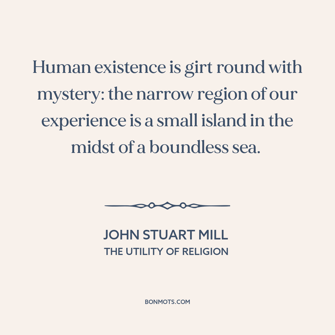 Human existence is girt round with mystery: the narrow region of our experience is a small island in the midst of a boundless sea.