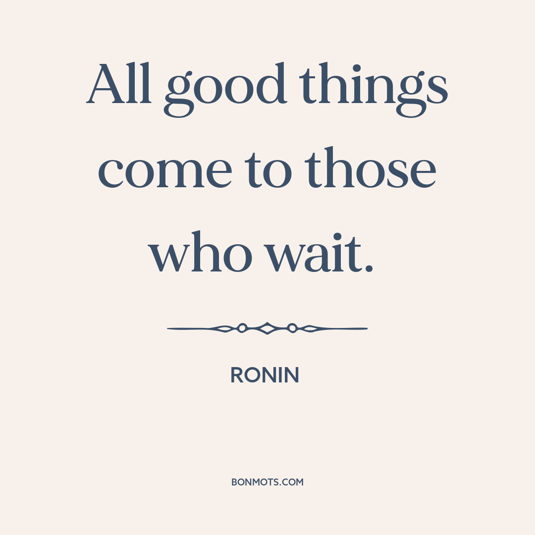 All good things come to those who wait.