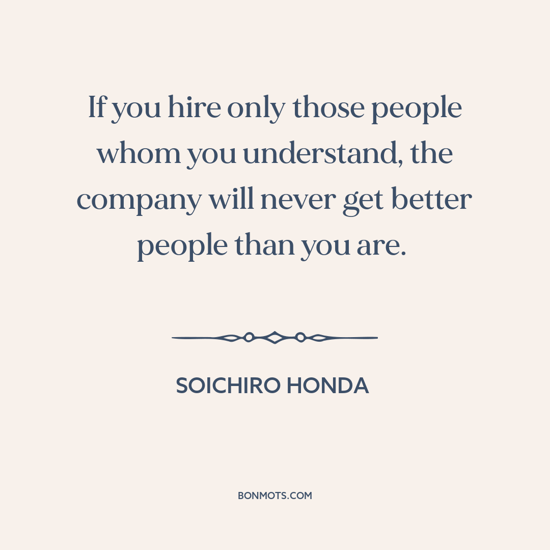 If you hire only those people whom you understand, the company will never get better people than you are.