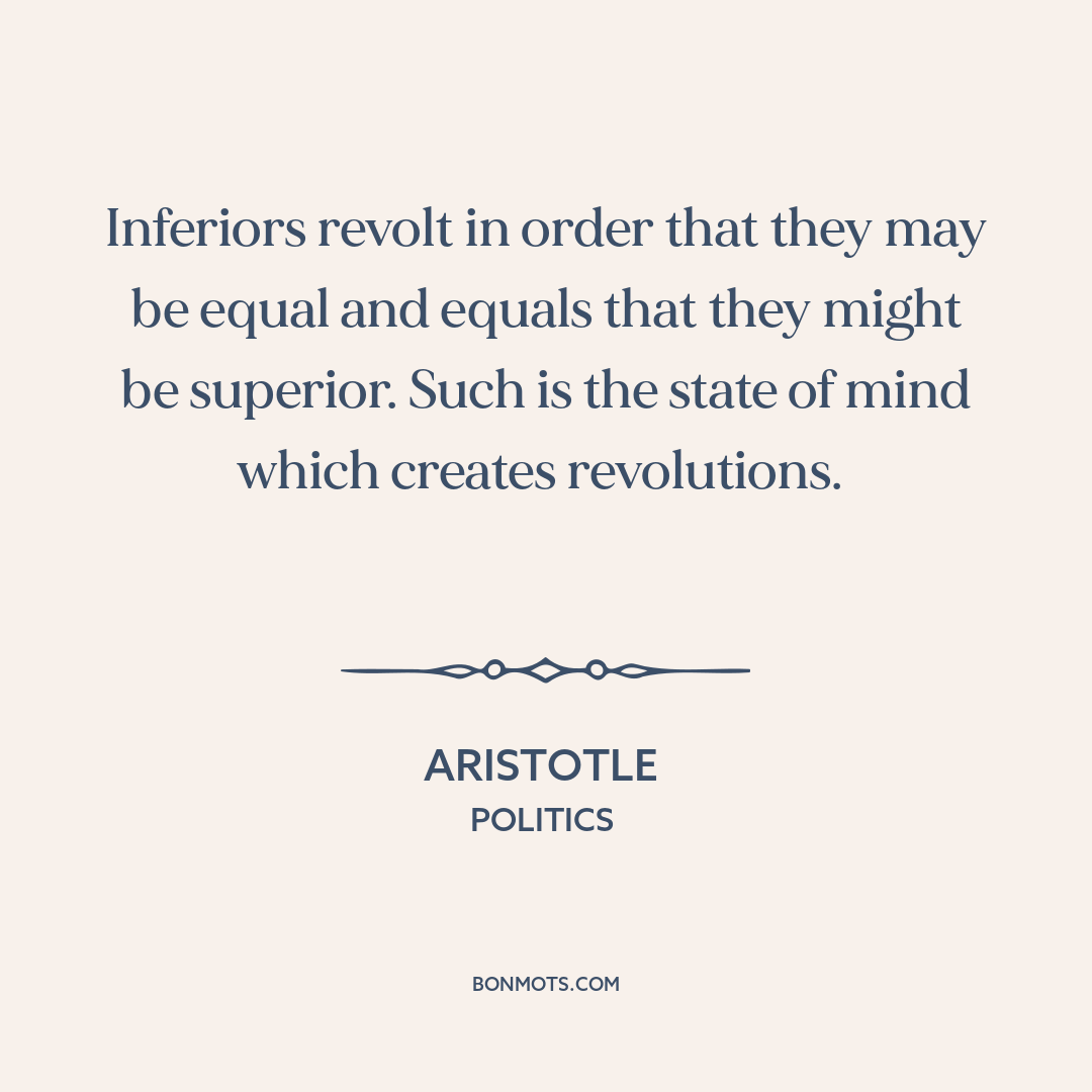 Inferiors revolt in order that they may be equal and equals that they might be superior. Such is the state of mind which creates revolutions.