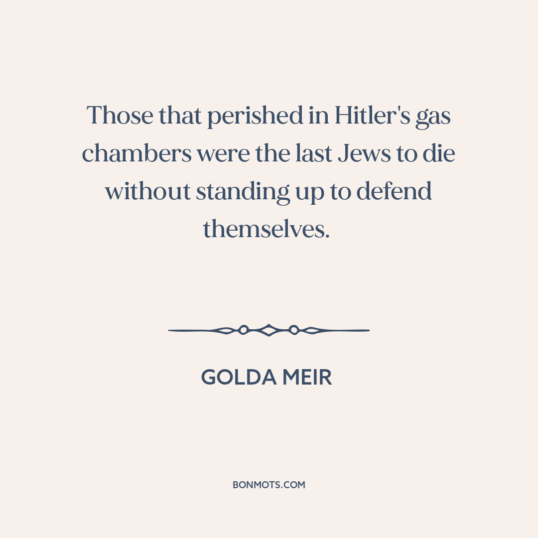 Those that perished in Hitler's gas chambers were the last Jews to die without standing up to defend themselves.