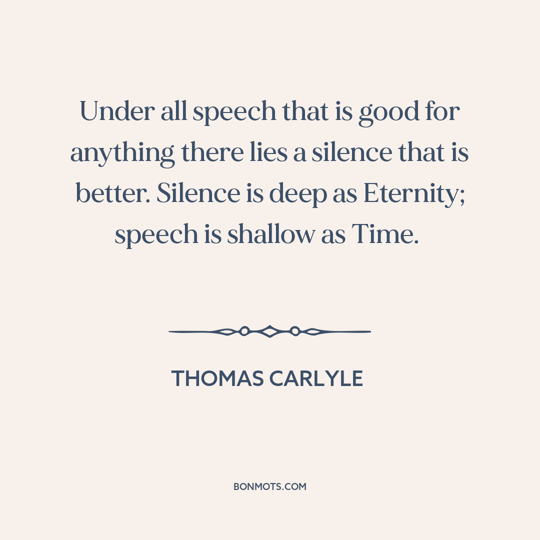 Under all speech that is good for anything there lies a silence that is better. Silence is deep as Eternity; speech is shallow as Time.