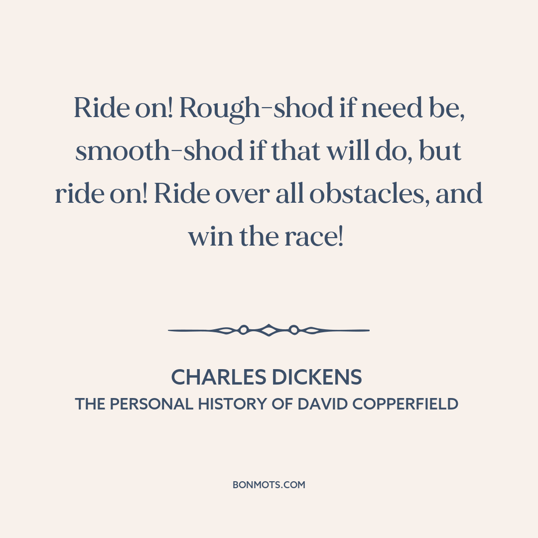 Ride on! Rough-shod if need be, smooth-shod if that will do, but ride on! Ride over all obstacles, and win the race!