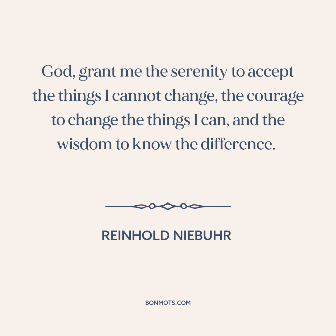 God, grant me the serenity to accept the things I cannot change, the courage to change the things I can, and the wisdom to know the difference.