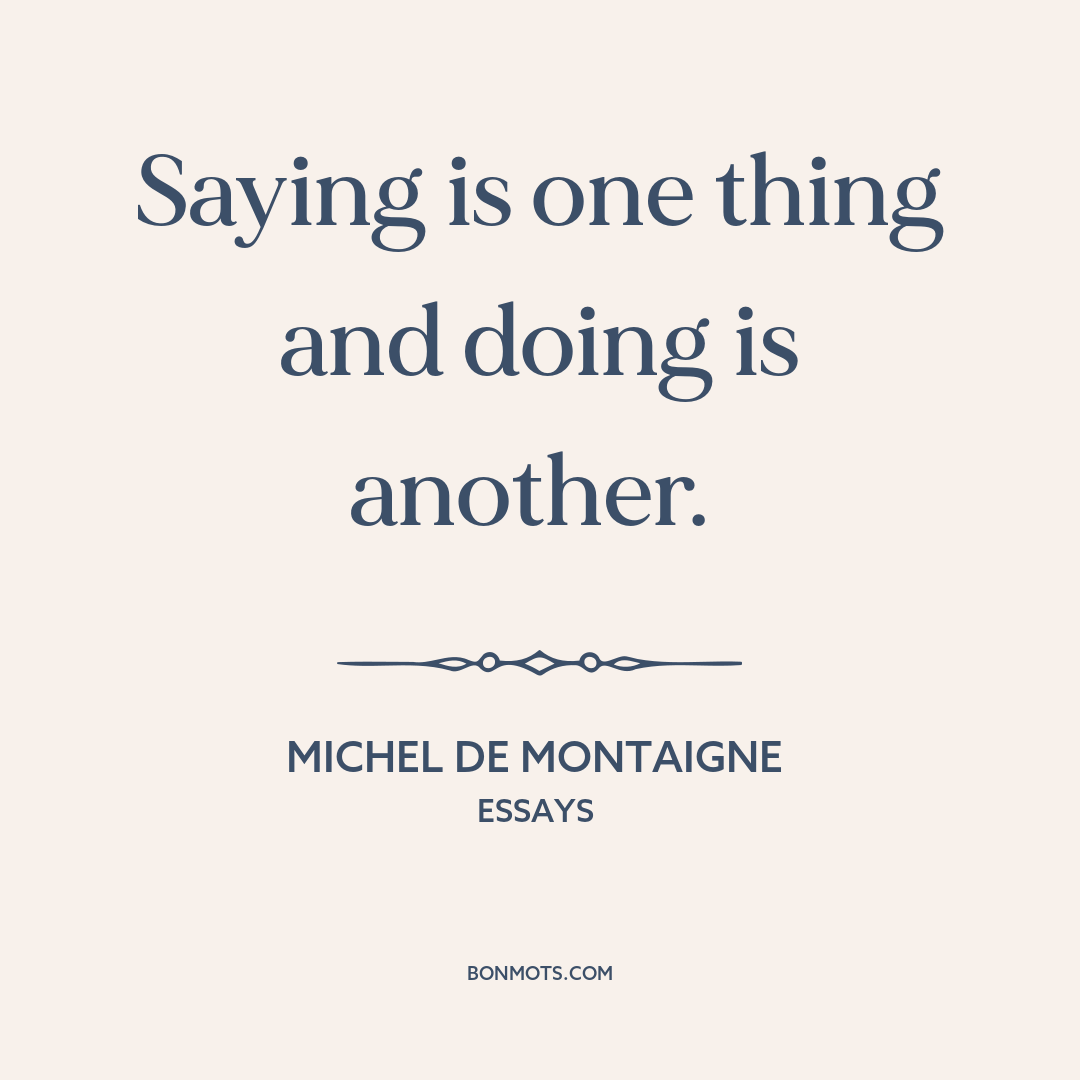 Saying is one thing and doing is another.