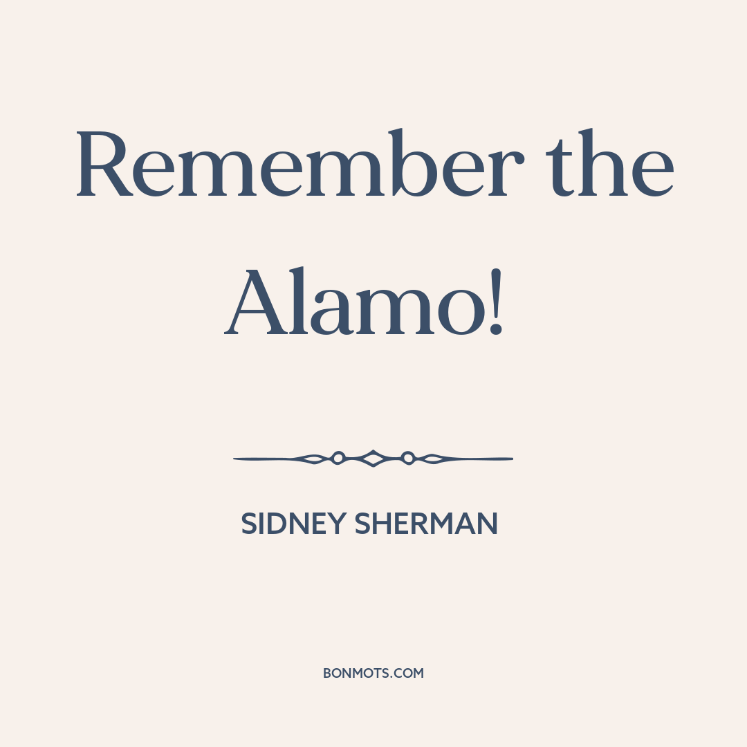 Sherman, Sidney. Battle cry at San Jacinto. 21 Apr. 1836, San Jacinto, TX, USA.