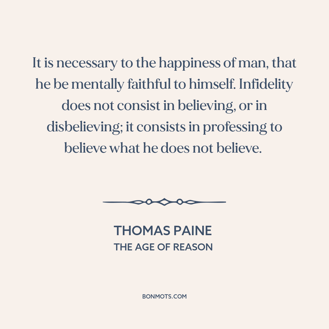 It is necessary to the happiness of man, that he be mentally faithful to himself. Infidelity does not consist in believing, or in disbelieving; it consists in professing to believe what he does not believe.