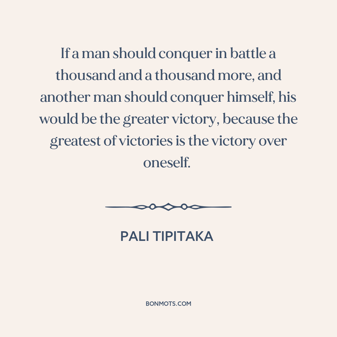 If a man should conquer in battle a thousand and a thousand more, and another man should conquer himself, his would be the greater victory, because the greatest of victories is the victory over oneself.