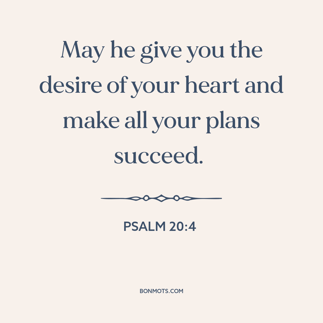 The Holy Bible, New International Version. International Bible Society, 1978. (Psalm 20:4).