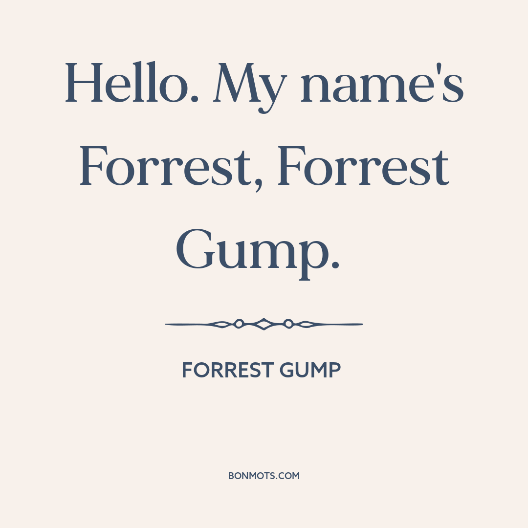 Hello. My name's Forrest, Forrest Gump.