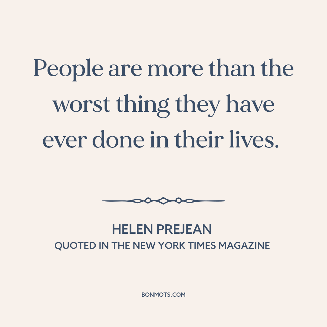 Prejean, Helen. Quoted in "Sister Sympathy." Written by Sue Helpren. The New York Times Magazine, 9 May 1993.