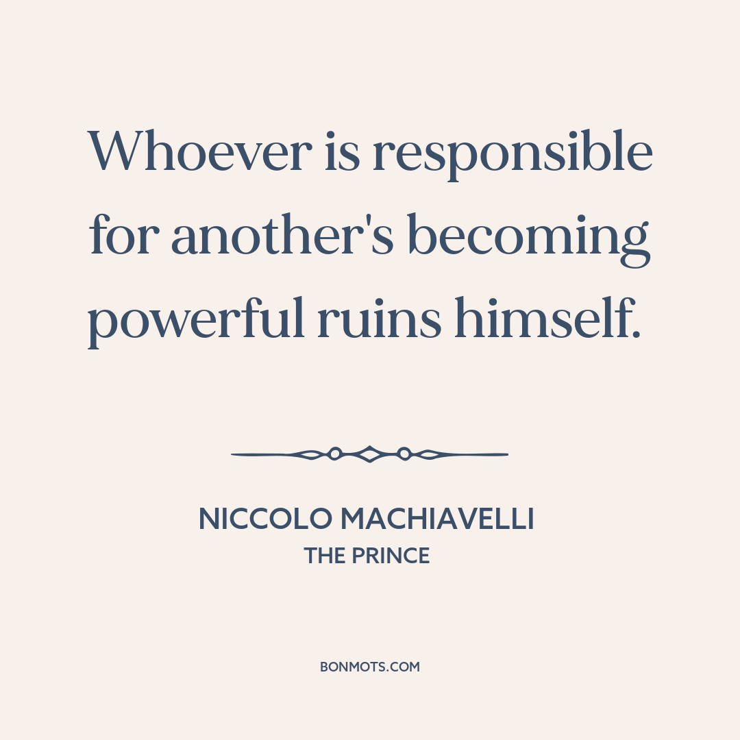 Whoever is responsible for another's becoming powerful ruins himself.