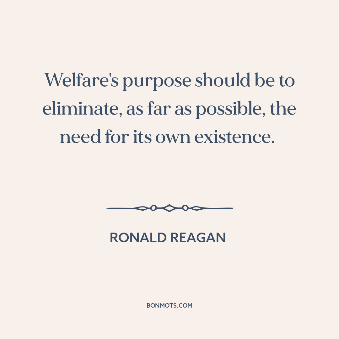 Welfare's purpose should be to eliminate, as far as possible, the need for its own existence.