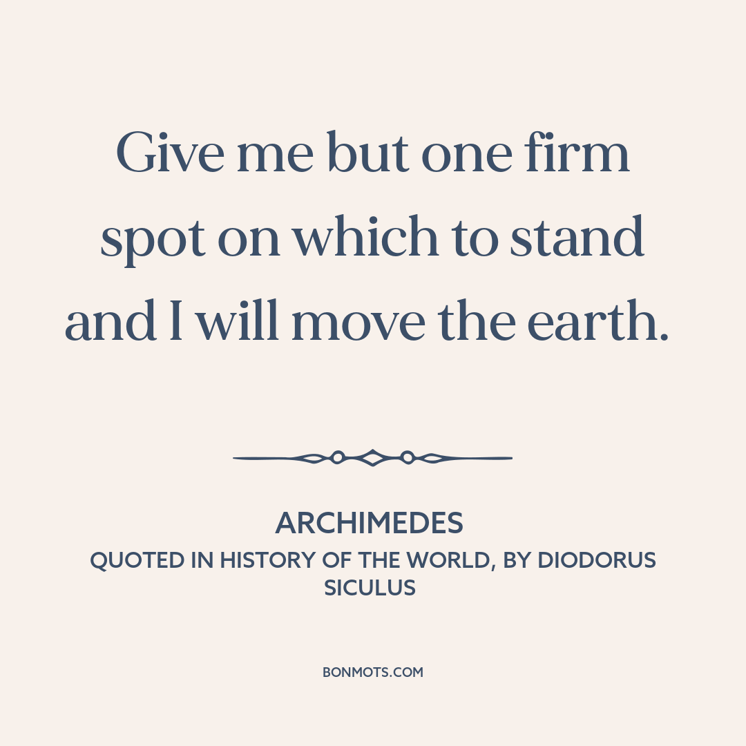 Archimedes. Quoted in History of the World, written by Diodorus Siculus. c. 20 BC.