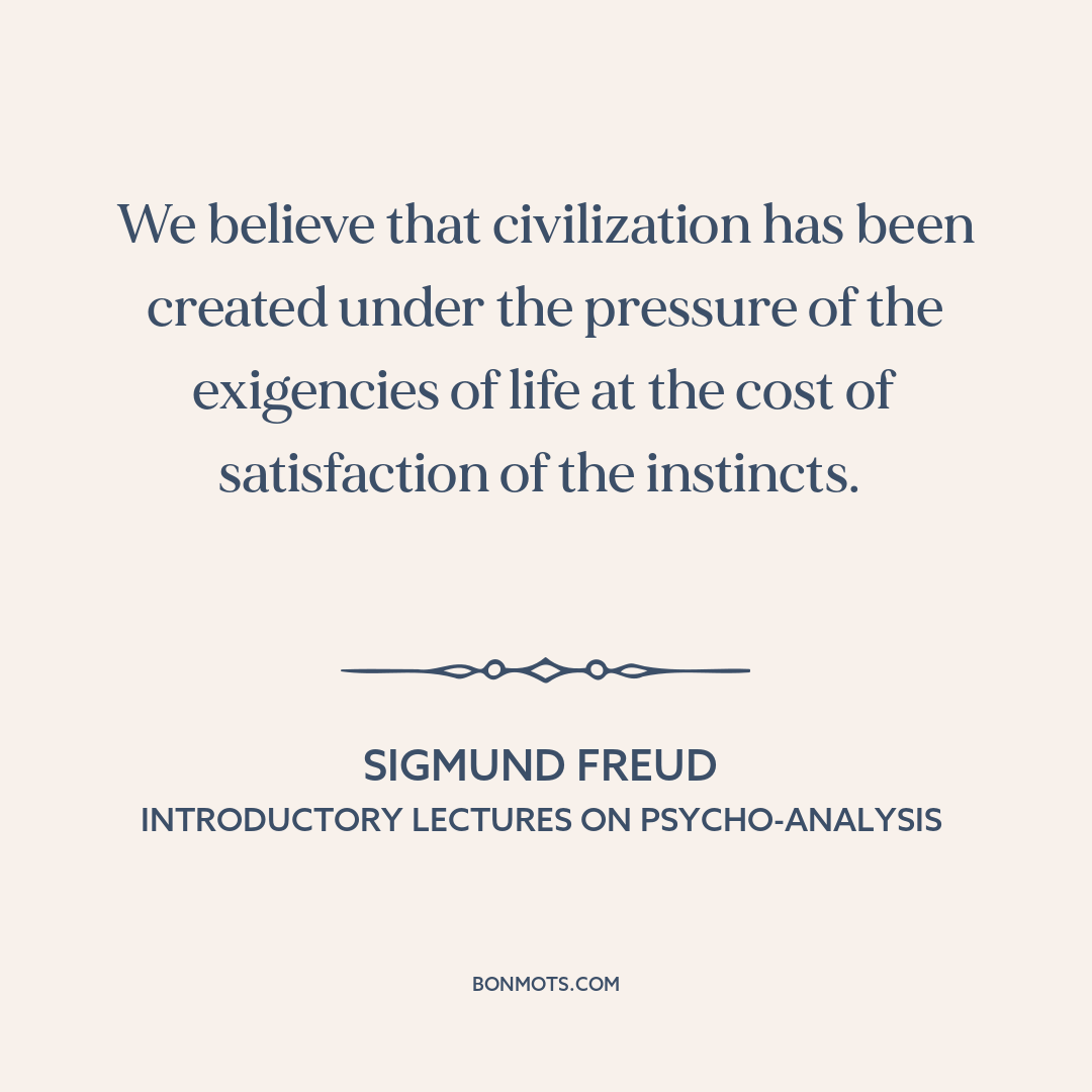 We believe that civilization has been created under the pressure of the exigencies of life at the cost of satisfaction of the instincts.