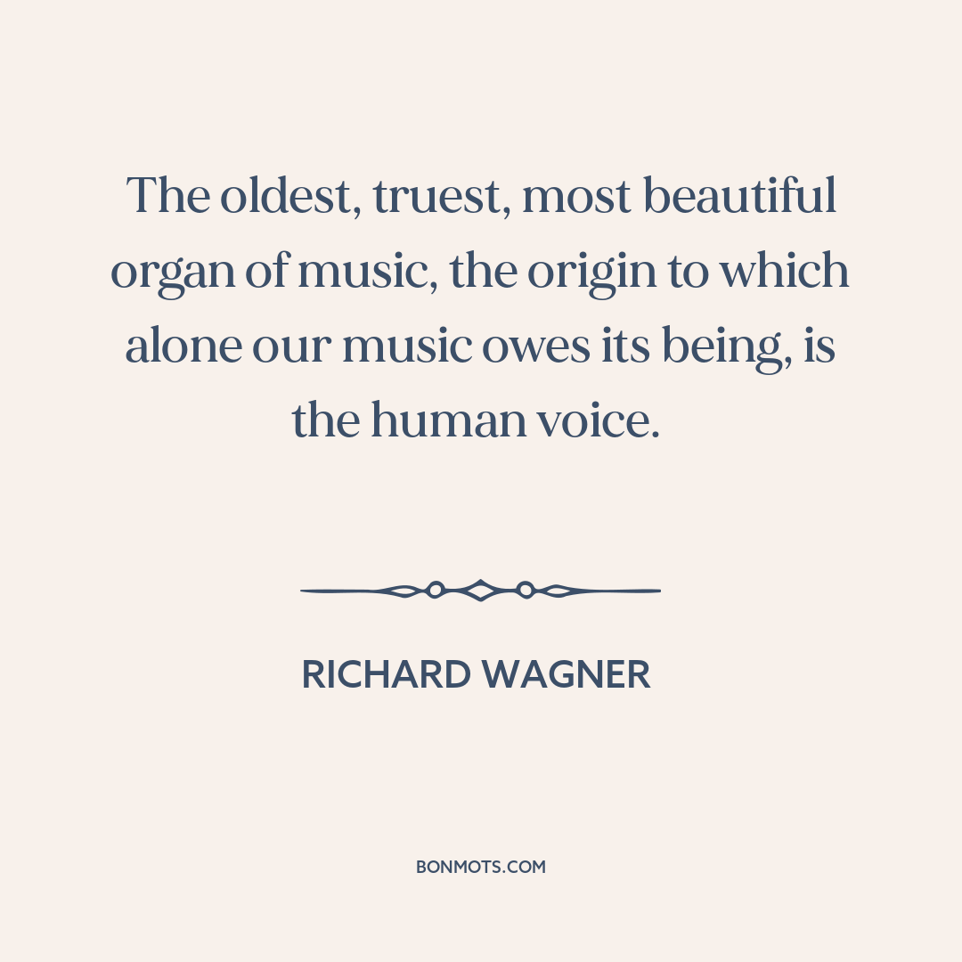The oldest, truest, most beautiful organ of music, the origin to which alone our music owes its being, is the human voice.