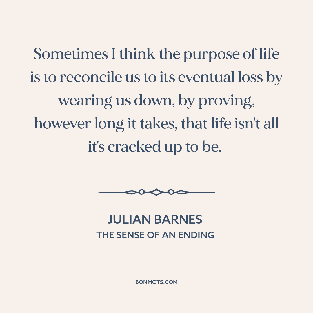 Sometimes I think the purpose of life is to reconcile us to its eventual loss by wearing us down, by proving, however long it takes, that life isn't all it's cracked up to be.