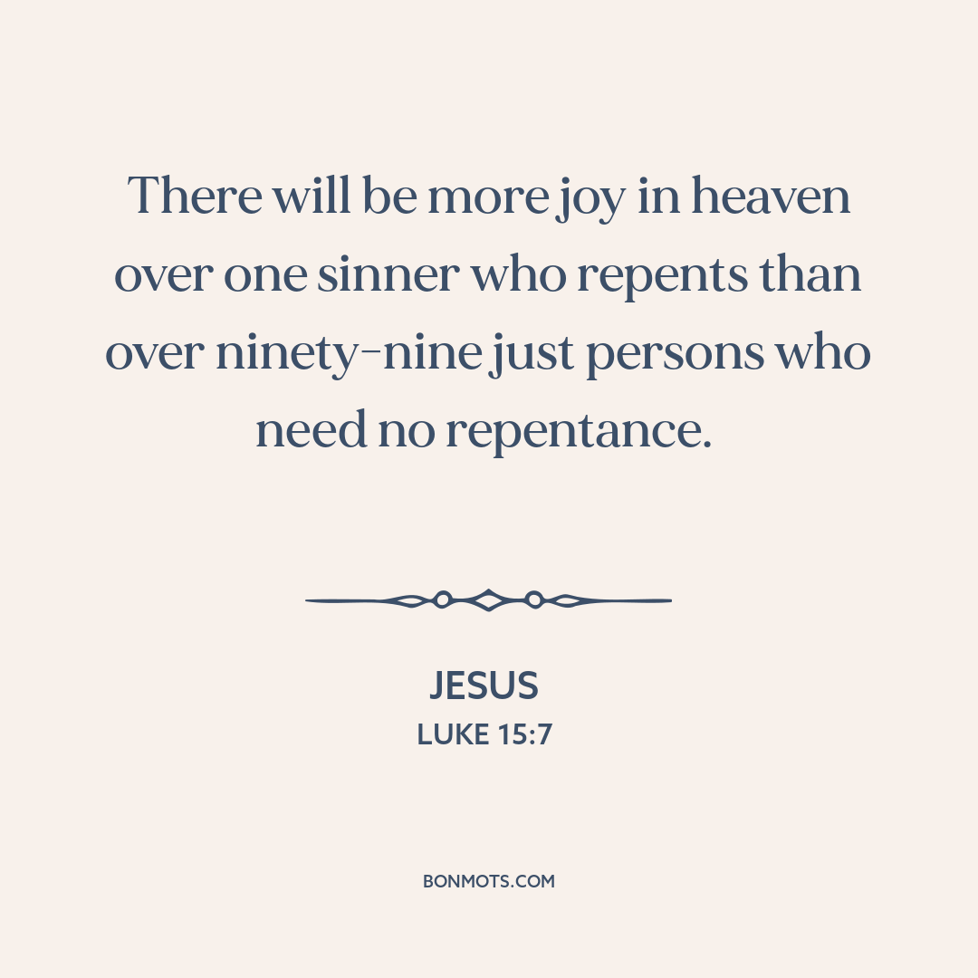 There will be more joy in heaven over one sinner who repents than over ninety-nine just persons who need no repentance.