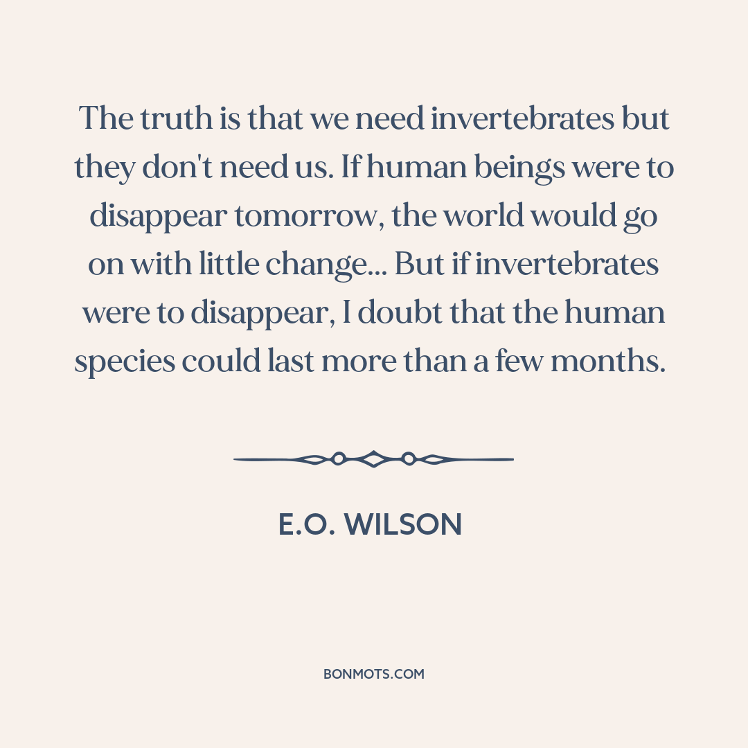 The truth is that we need invertebrates but they don't need us. If human beings were to disappear tomorrow, the world would go on with little change... But if invertebrates were to disappear, I doubt that the human species could last more than a few months.