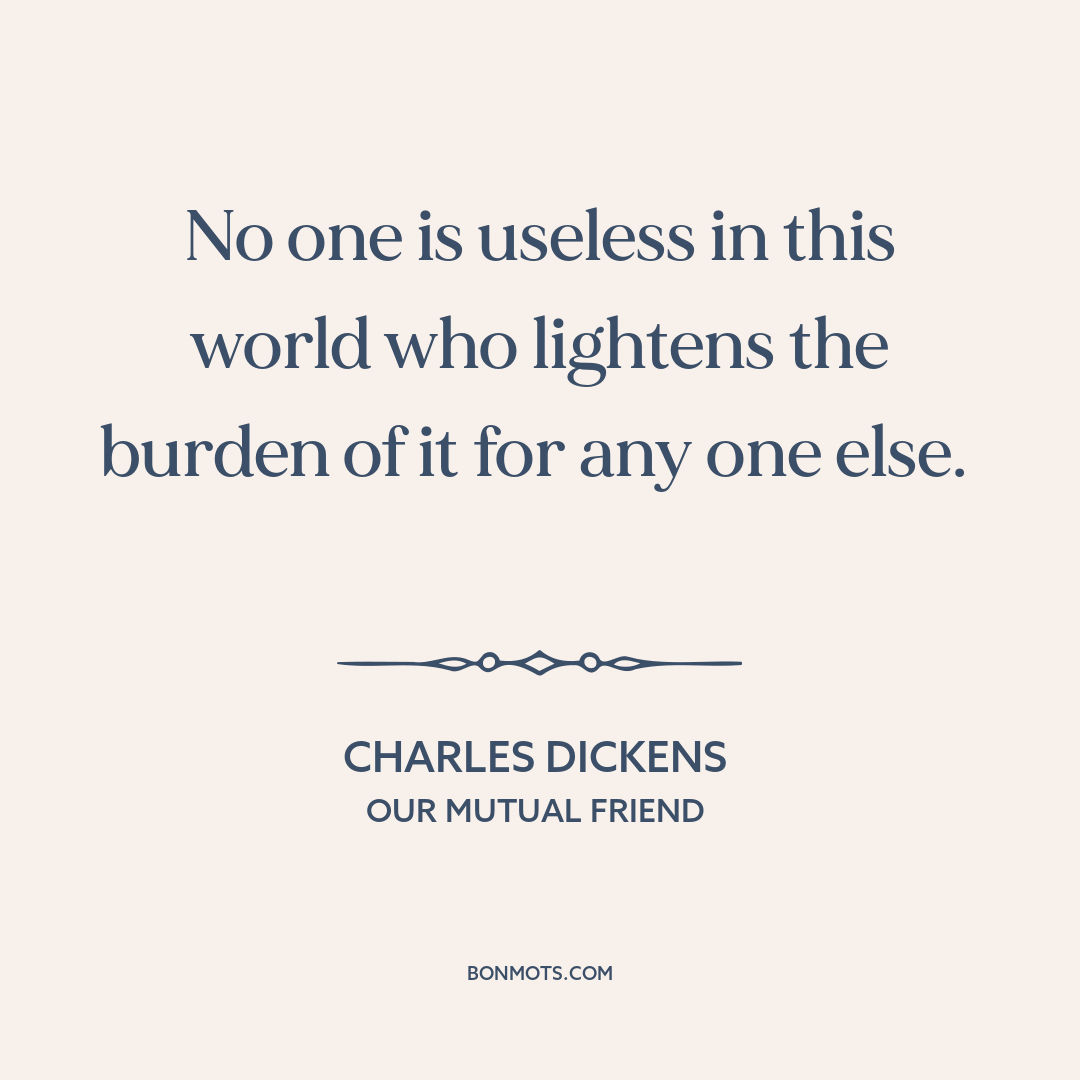 No one is useless in this world who lightens the burden of it for any one else.