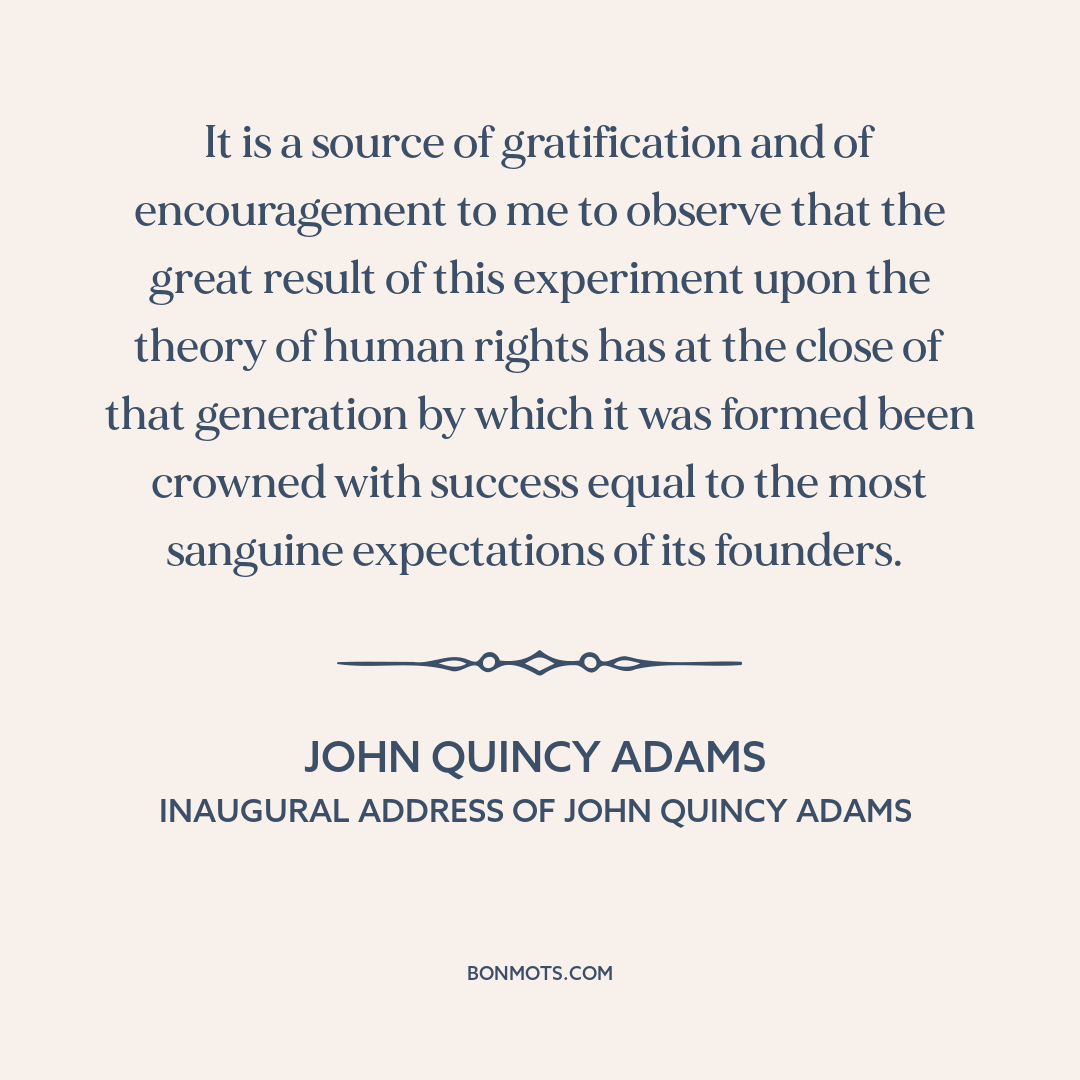 It is a source of gratification and of encouragement to me to observe that the great result of this experiment upon the theory of human rights has at the close of that generation by which it was formed been crowned with success equal to the most sanguine expectations of its founders.