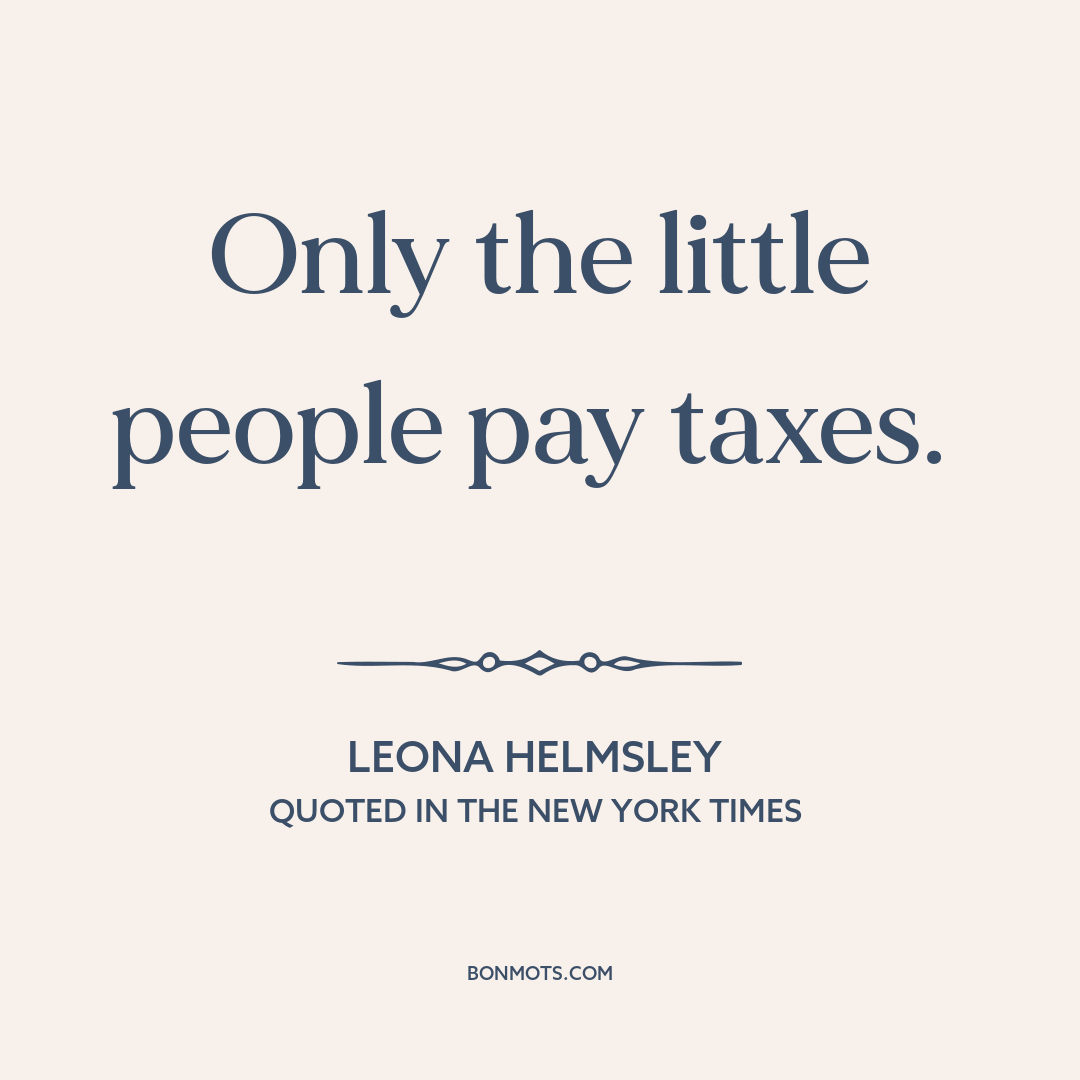 Helmsley, Leona. Quoted in "Maid Testifies Helmsley Denied Paying Taxes." Written by The Associated Press. The New York Times, 12 July 1989.