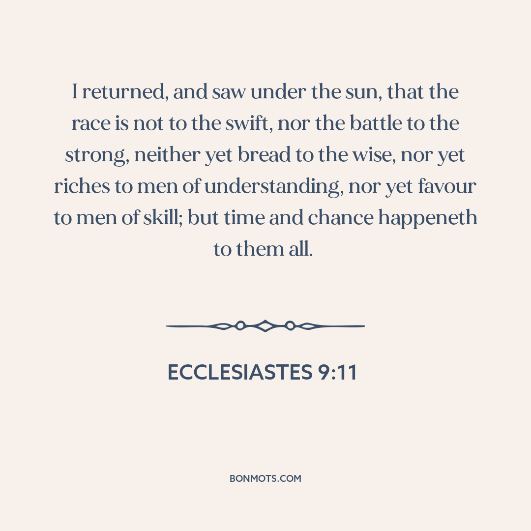 I returned, and saw under the sun, that the race is not to the swift, nor the battle to the strong, neither yet bread to the wise, nor yet riches to men of understanding, nor yet favour to men of skill; but time and chance happeneth to them all.