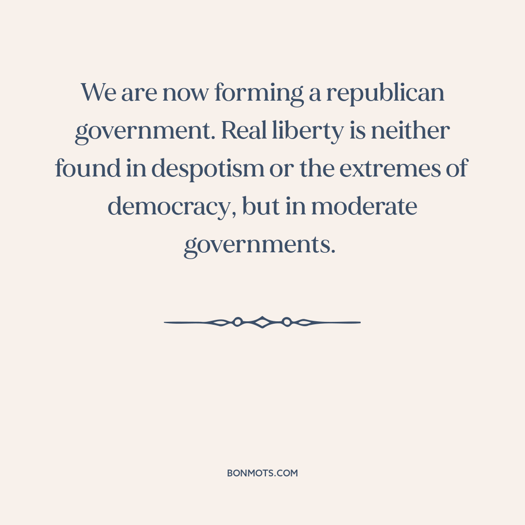We are now forming a republican government. Real liberty is neither found in despotism or the extremes of democracy, but in moderate governments.