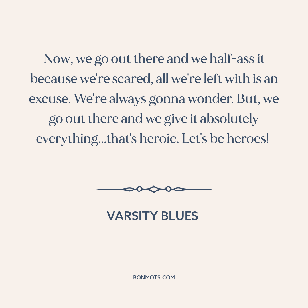 Now, we go out there and we half-ass it because we're scared, all we're left with is an excuse. We're always gonna wonder. But, we go out there and we give it absolutely everything...that's heroic. Let's be heroes!