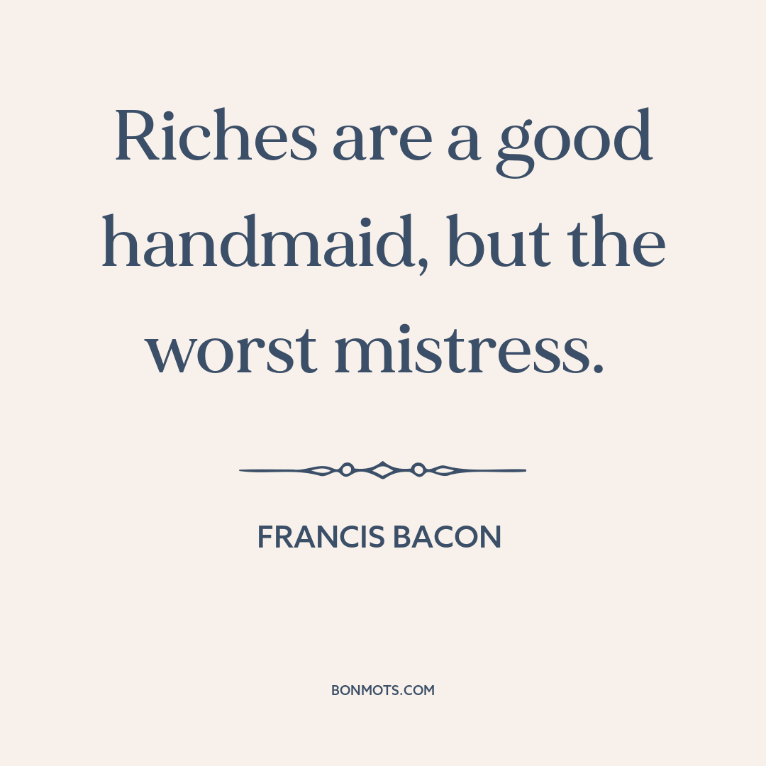 Riches are a good handmaid, but the worst mistress.